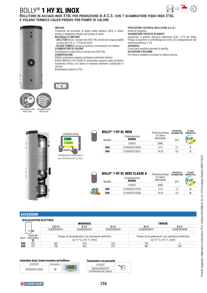 - BOLLITORE A.C.S.: Acciaio Inox AISI 316L idoneo per acqua potabile