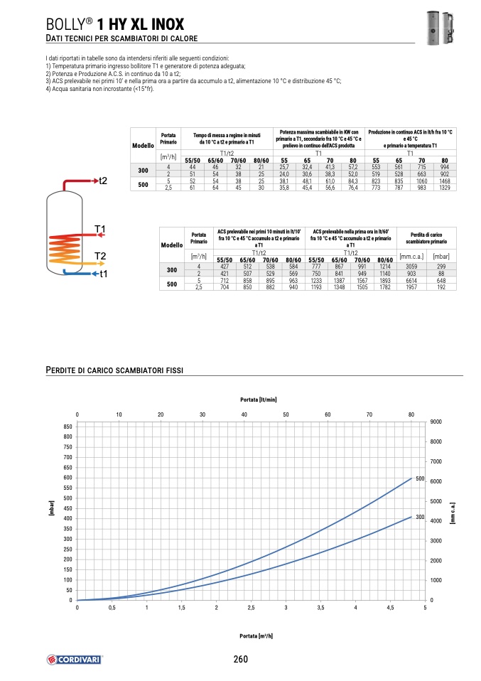fra 10 °C e 45 °C accumulo a t2 e primario