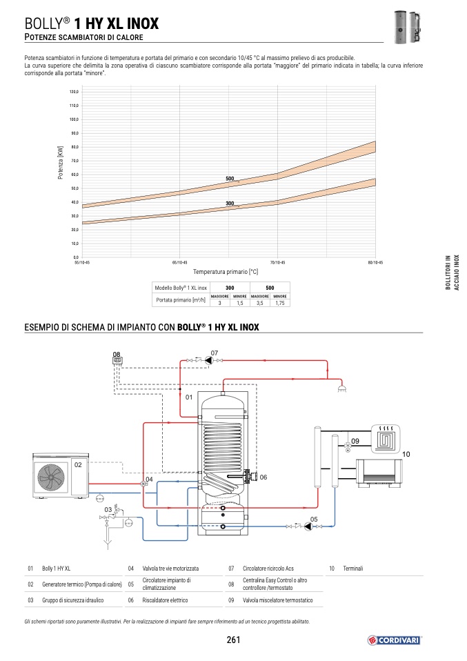 La curva superiore che delimita la zona operativa di ciascuno scambiatore corrisponde alla portata “maggiore” del primario indicata in tabella; la curva inferiore