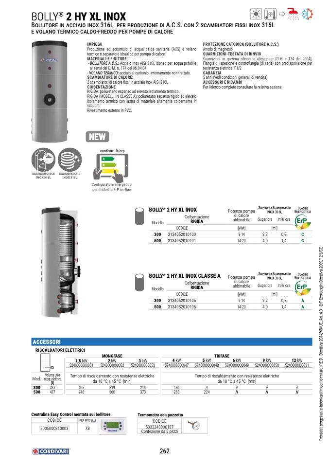 - BOLLITORE A.C.S.: Acciaio Inox AISI 316L idoneo per acqua potabile