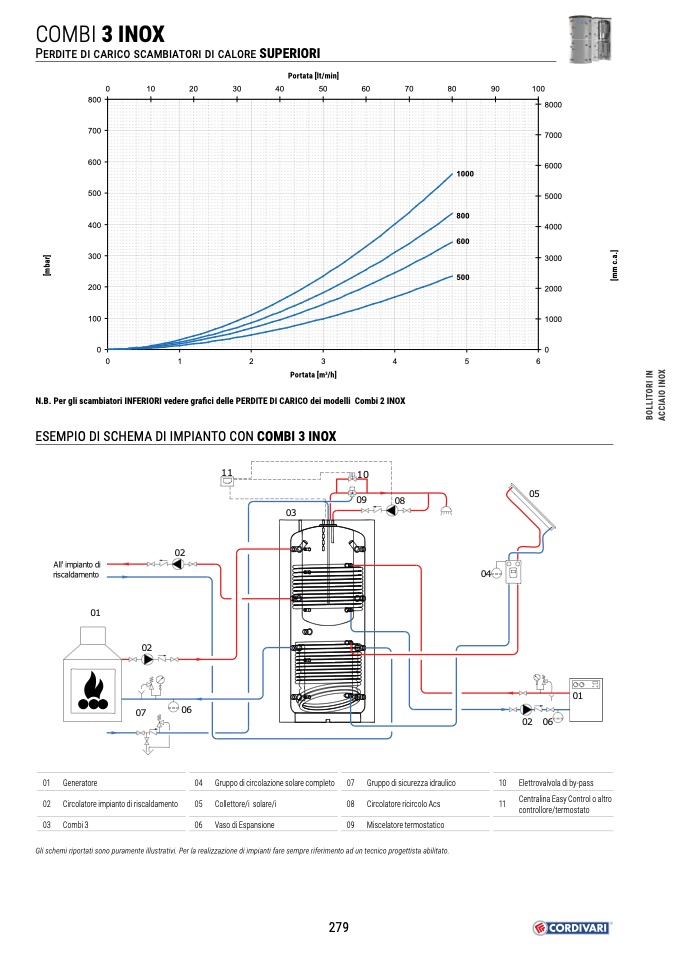 N.B. Per gli scambiatori INFERIORI vedere grafici delle PERDITE DI CARICO dei modelli Combi 2 INOX