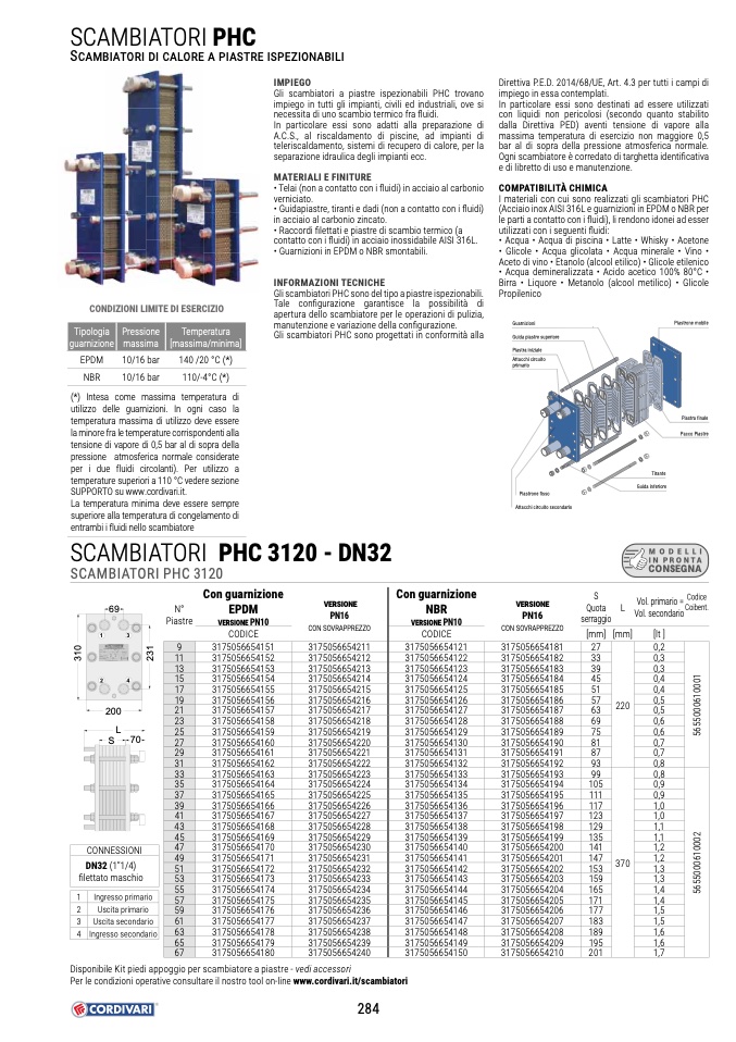 Per le condizioni operative consultare il nostro tool on-line www.cordivari.it/scambiatori