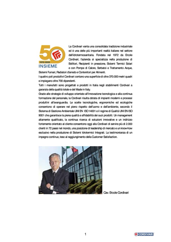 Tutti i manufatti sono progettati e prodotti in Italia negli stabilimenti Cordivari a