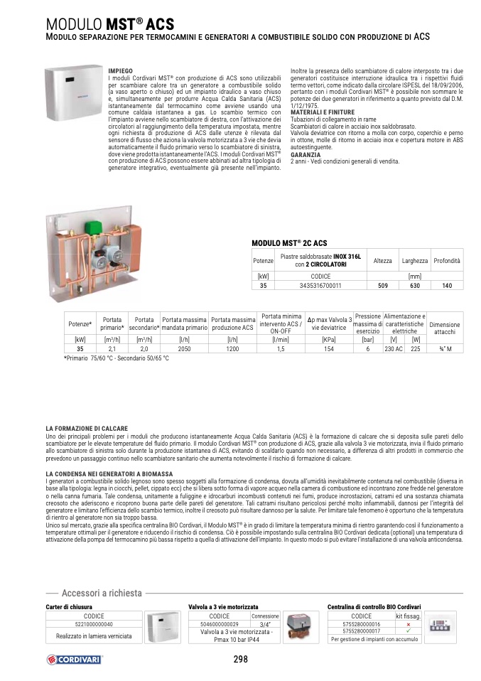 scambiatore per le elevate temperature del fluido primario. Il modulo Cordivari MST