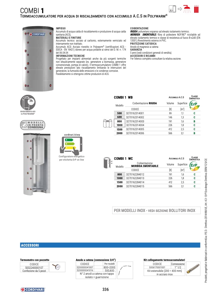 convenzionale, pompa di calore). Il termoaccumulatore COMBI 1 offre