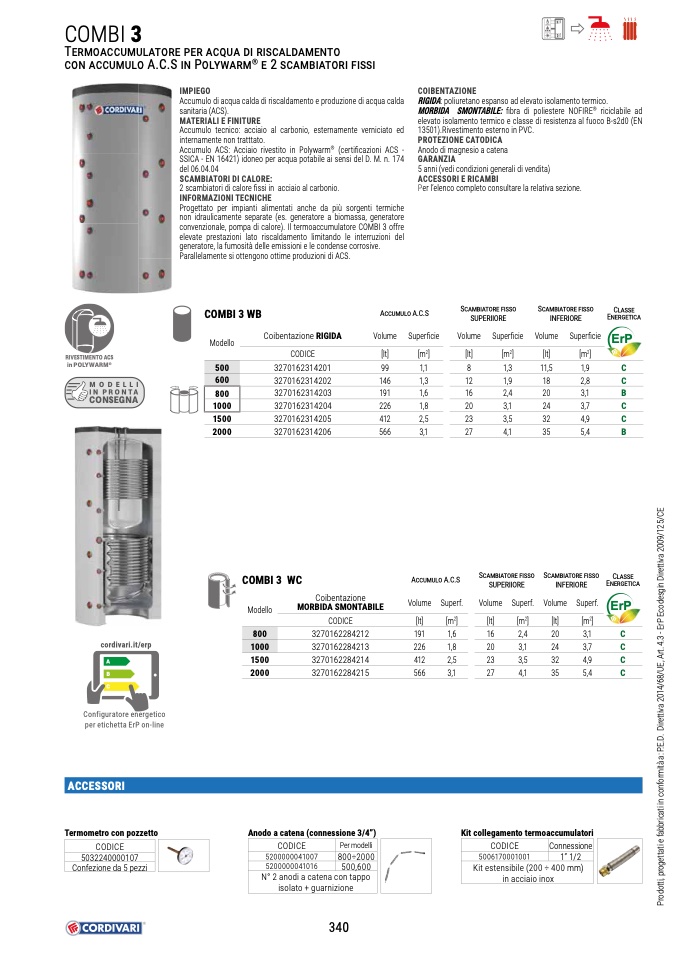convenzionale, pompa di calore). Il termoaccumulatore COMBI 3 offre