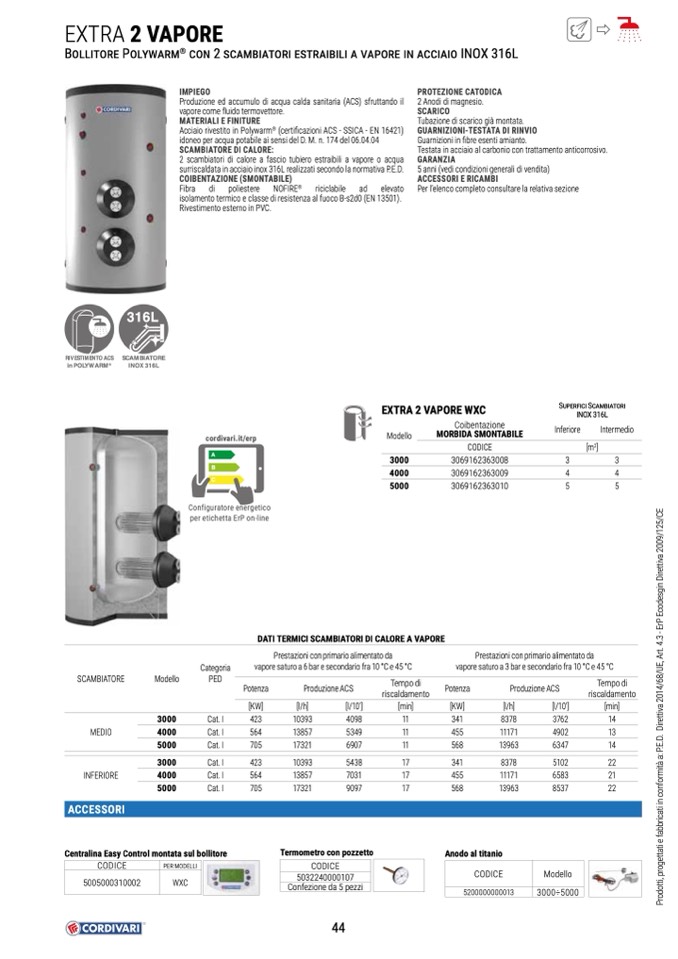 vapore saturo a 3 bar e secondario fra 10 °C e 45 °C