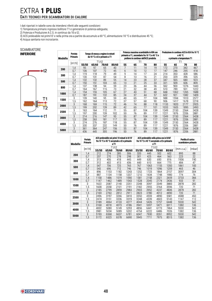 fra 10 °C e 45 °C accumulo a t2 e primario
