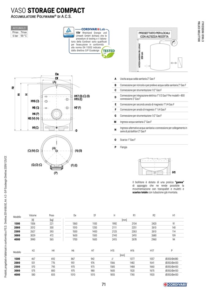 B Connessione per ricircolo o per prelievo acqua calda sanitaria 2” Gas F