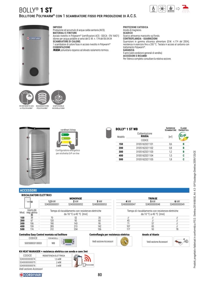 Produzione ed accumulo di acqua calda sanitaria (ACS).
