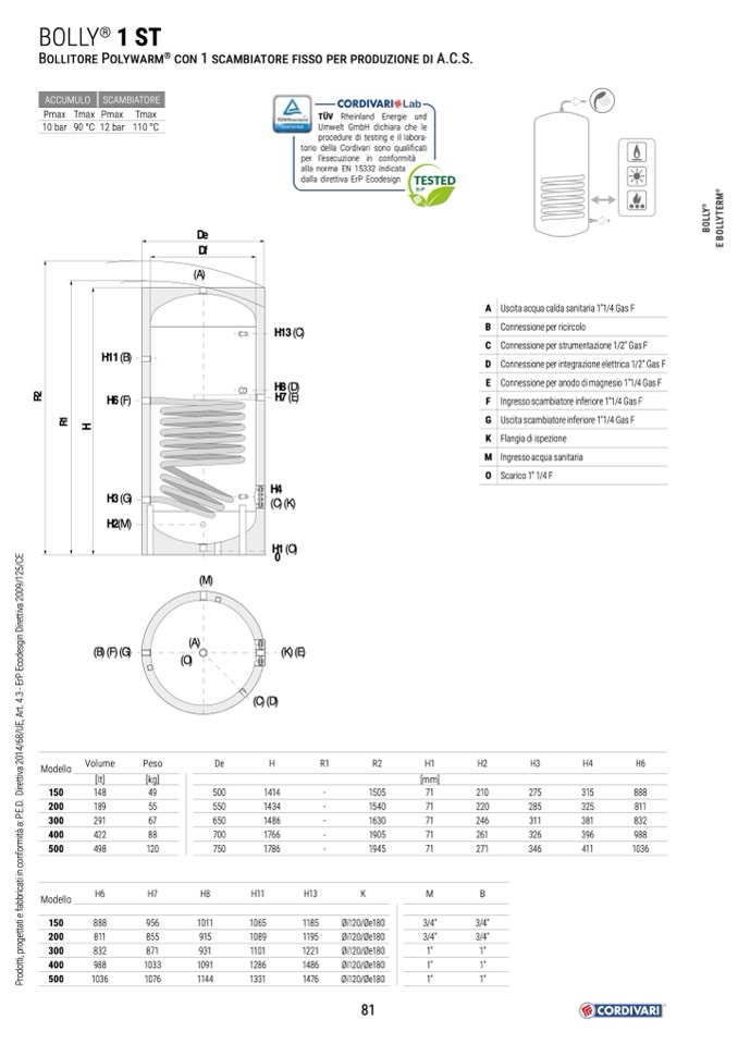 A Uscita acqua calda sanitaria 1”1/4 Gas F