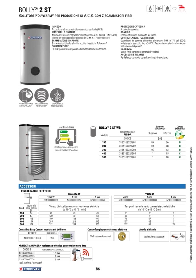 Produzione ed accumulo di acqua calda sanitaria (ACS).
