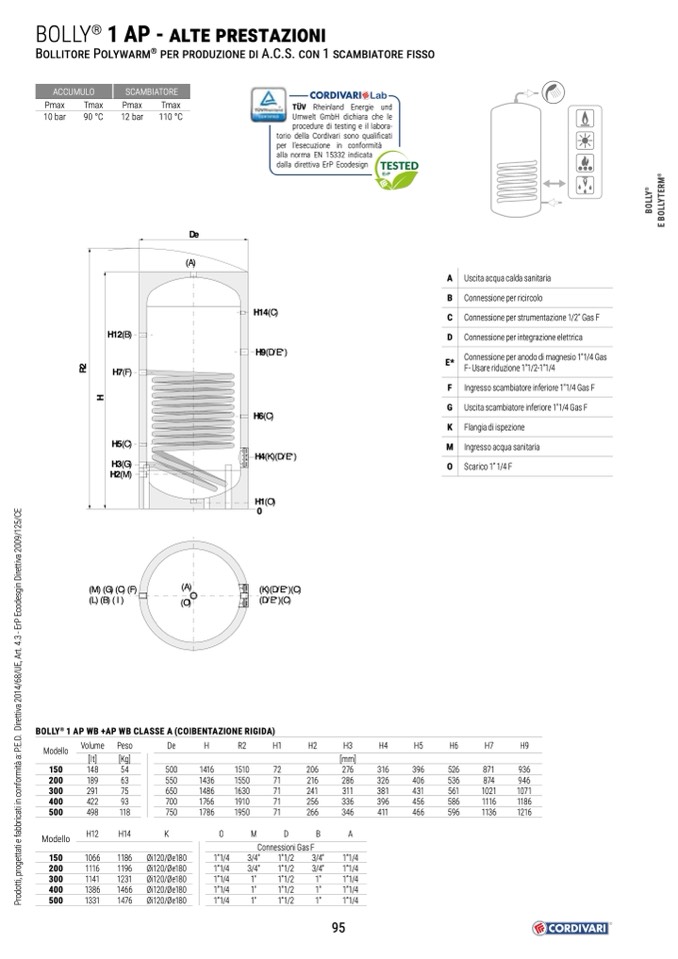 G Uscita scambiatore inferiore 1"1/4 Gas F