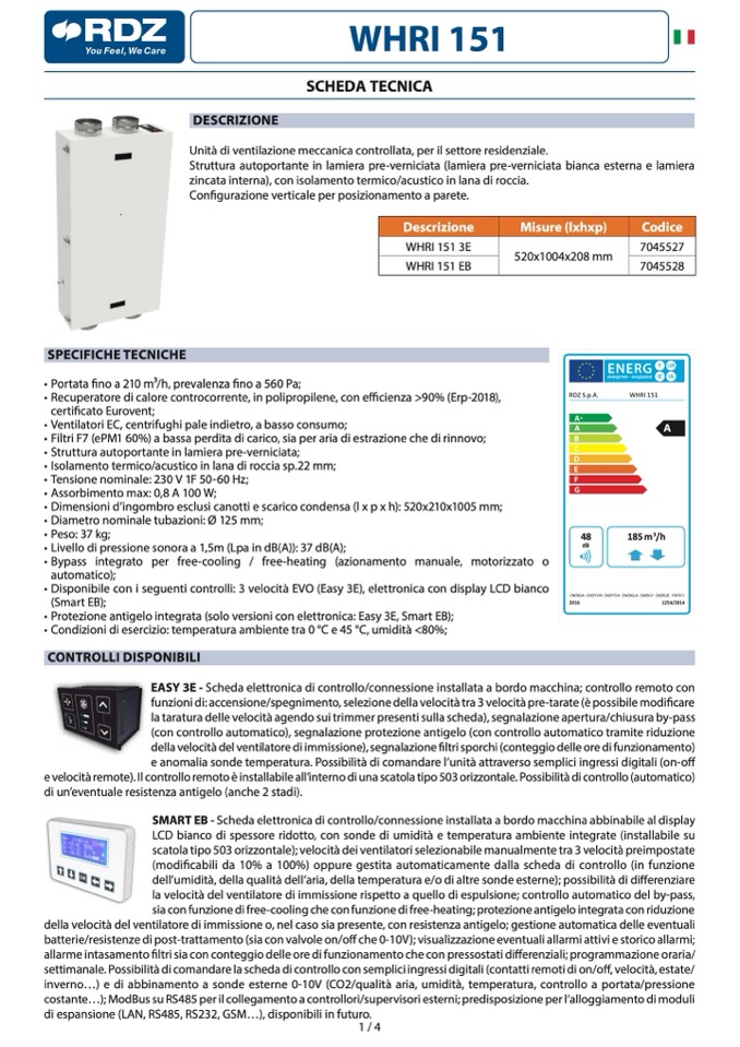 Unità di ventilazione meccanica controllata, per il settore residenziale