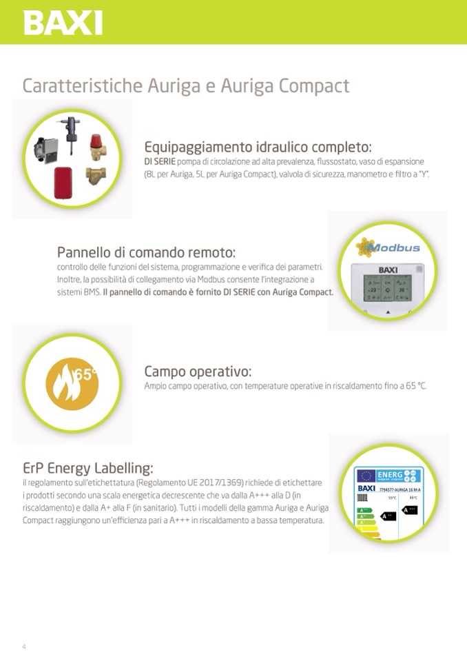 riscaldamento) e dalla A+ alla F (in sanitario). Tutti i modelli della gamma Auriga e Auriga