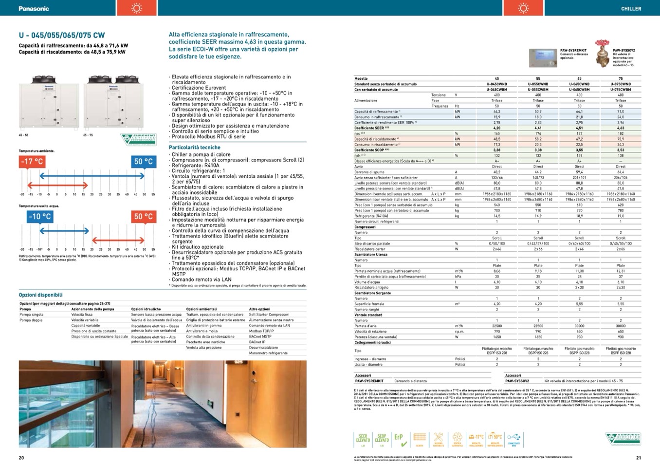 4) I dati si riferiscono alla temperatura dell’acqua calda in uscita a 45 °C e alla temperatura dell’aria ambiente della batteria a 7 °C con umidità relativa dell’87%, secondo la norma EN14511. 5) A seguito del