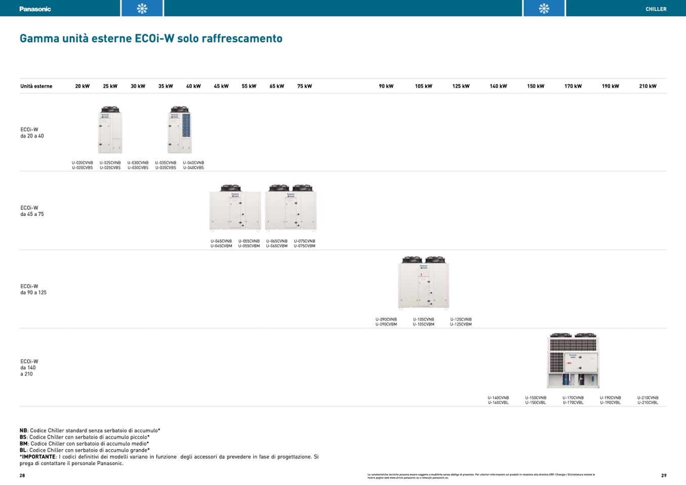 NB: Codice Chiller standard senza serbatoio di accumulo*