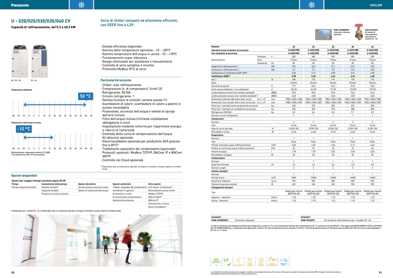 Capacità di raffrescamento: da19,3 a 40,9 kW