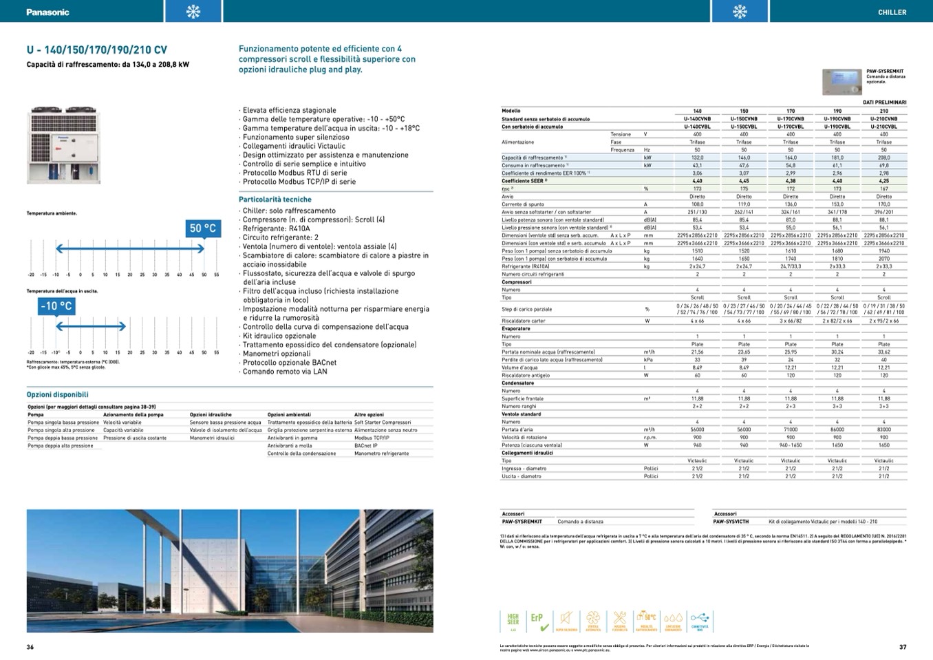 Capacità di raffrescamento: da 134,0 a 208,8 kW