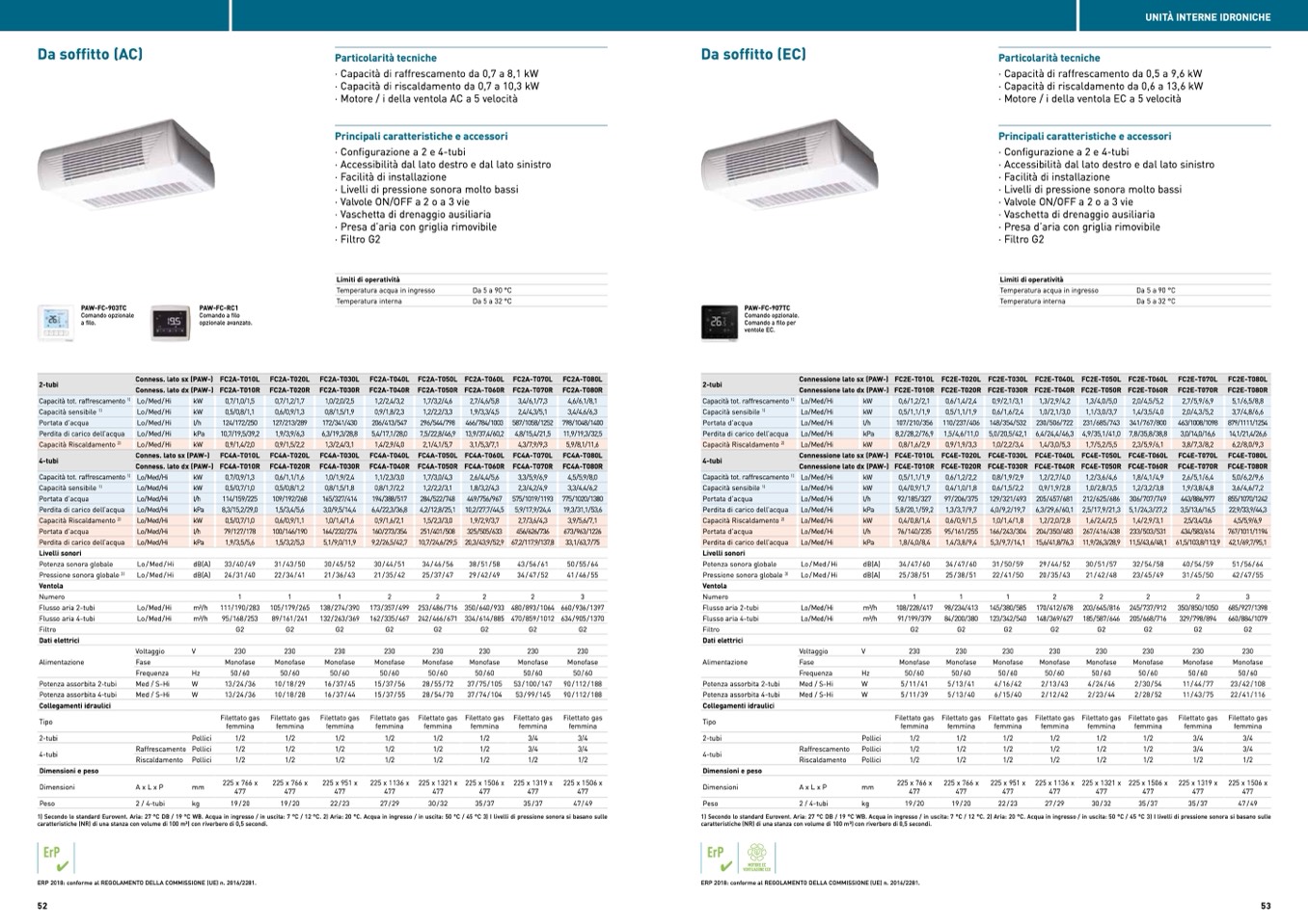 1) Secondo lo standard Eurovent. Aria: 27 °C DB / 19 °C WB. Acqua in ingresso / in uscita: 7 °C / 12 °C. 2) Aria: 20 °C. Acqua in ingresso / in uscita: 50 °C / 45 °C 3) I livelli di pressione sonora si basano sulle