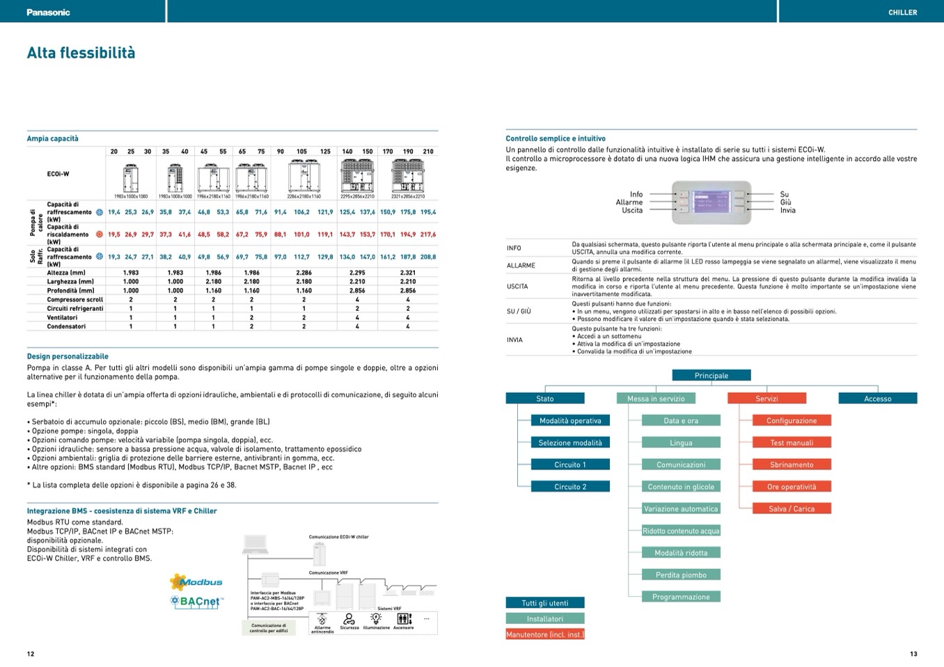 • Altre opzioni: BMS standard (Modbus RTU), Modbus TCP/IP, Bacnet MSTP, Bacnet IP , ecc