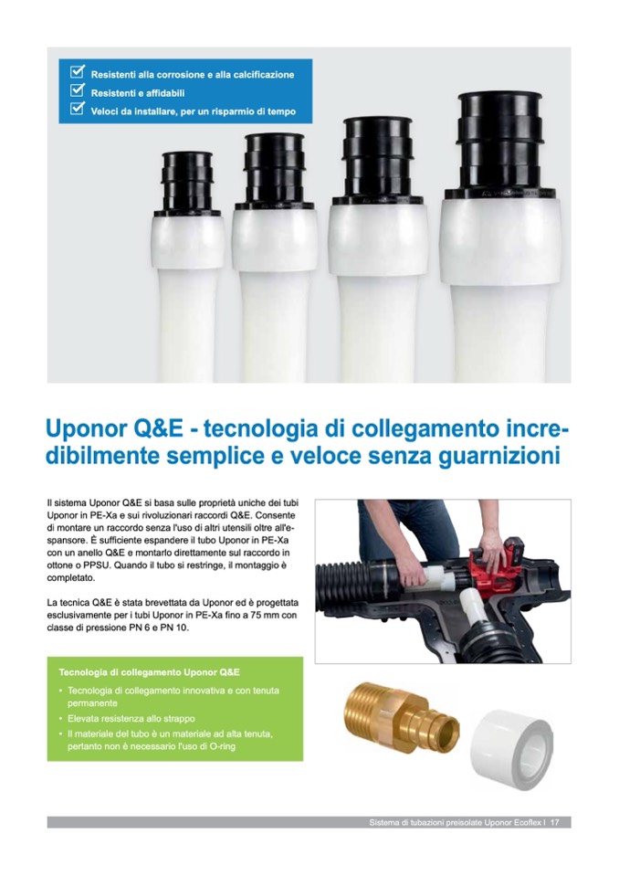 Uponor in PE-Xa e sui rivoluzionari raccordi Q&E. Consente