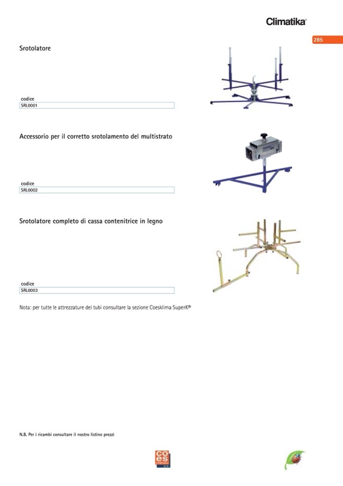 Nota: per tutte le attrezzature dei tubi consultare la sezione Coesklima SuperK®