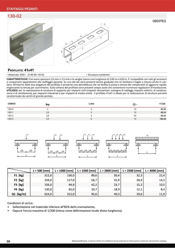 Condizioni di carico: