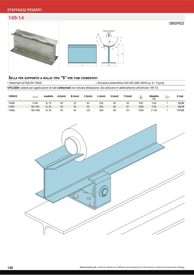 SELLA PER SUPPORTO A RULLO TIPO "S" PER TUBI COIBENTATI