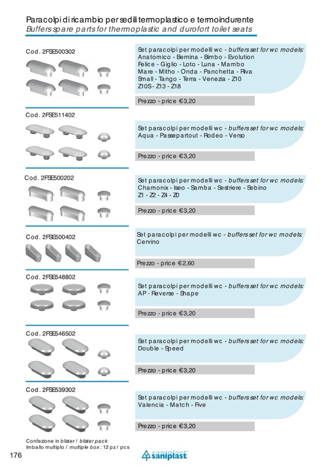 Buffers spare parts for thermoplastic and durofort toilet seats