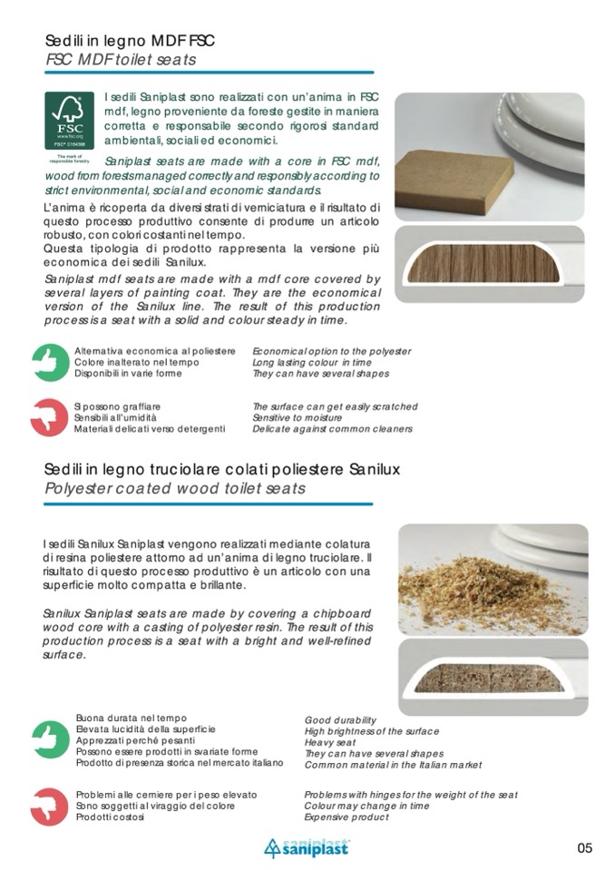 Saniplast seats are made with a core in FSC mdf,