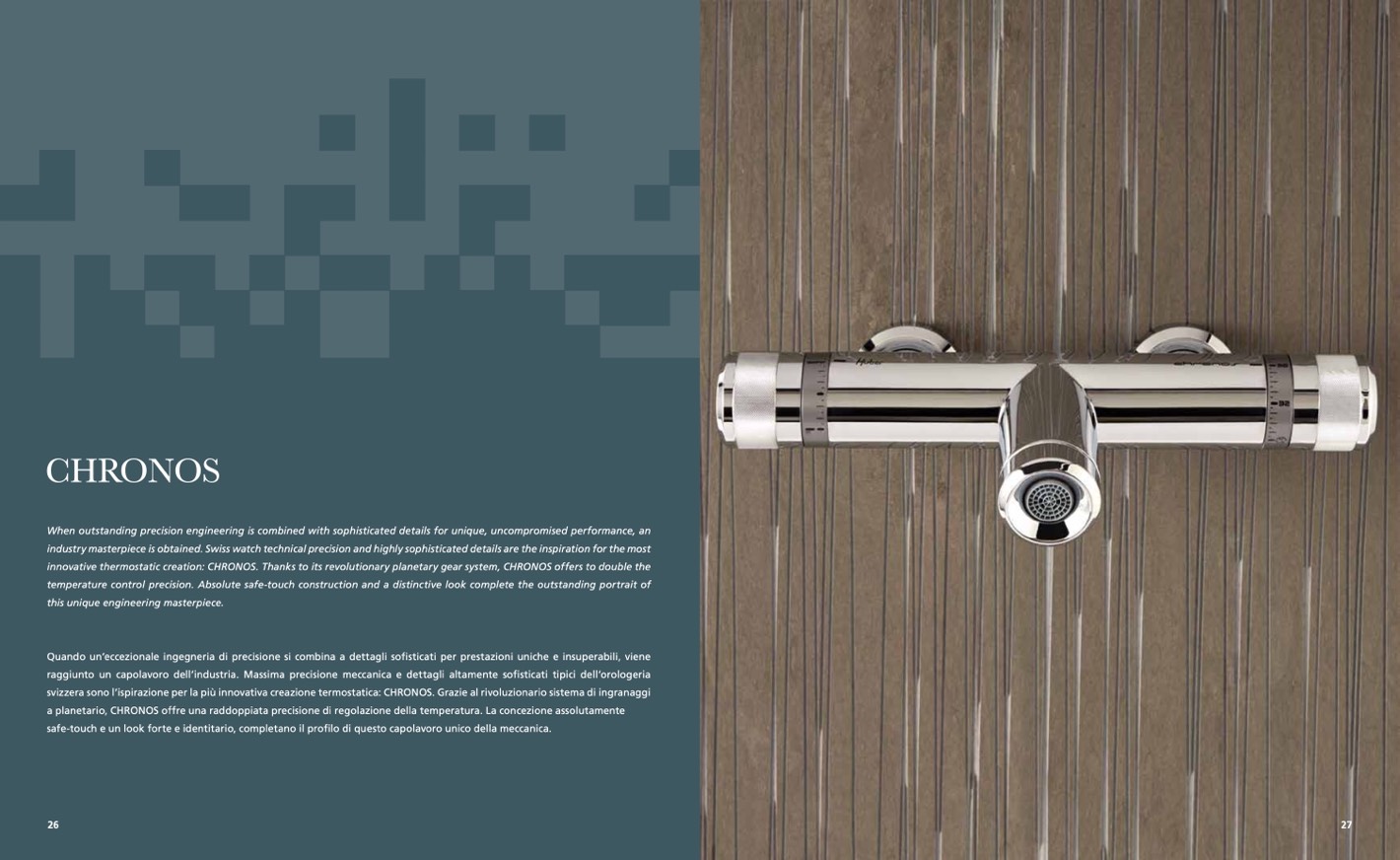 svizzera sono l’ispirazione per la più innovativa creazione termostatica: CHRONOS. Grazie al rivoluzionario sistema di ingranaggi