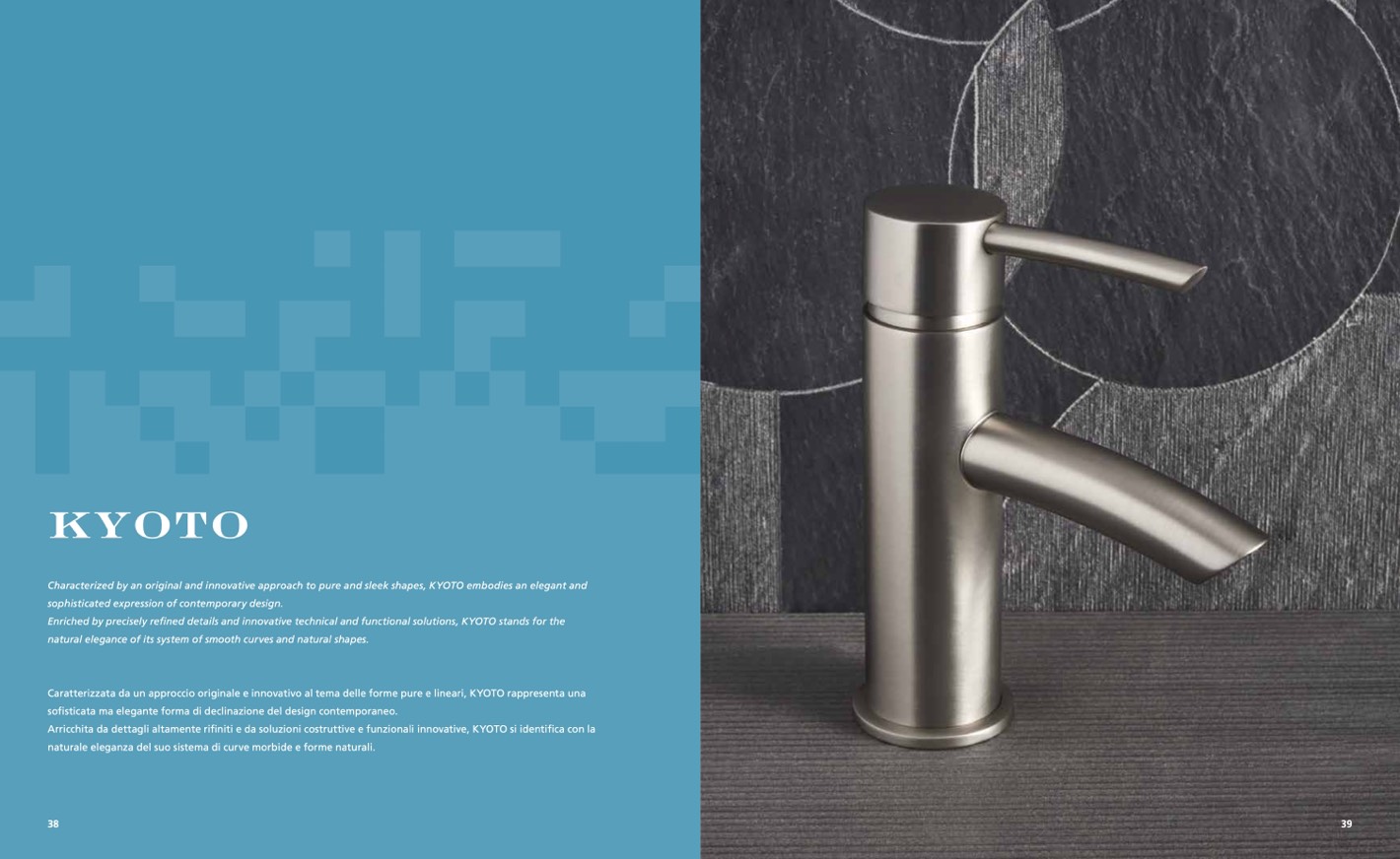 Characterized by an original and innovative approach to pure and sleek shapes, KYOTO embodies an elegant and