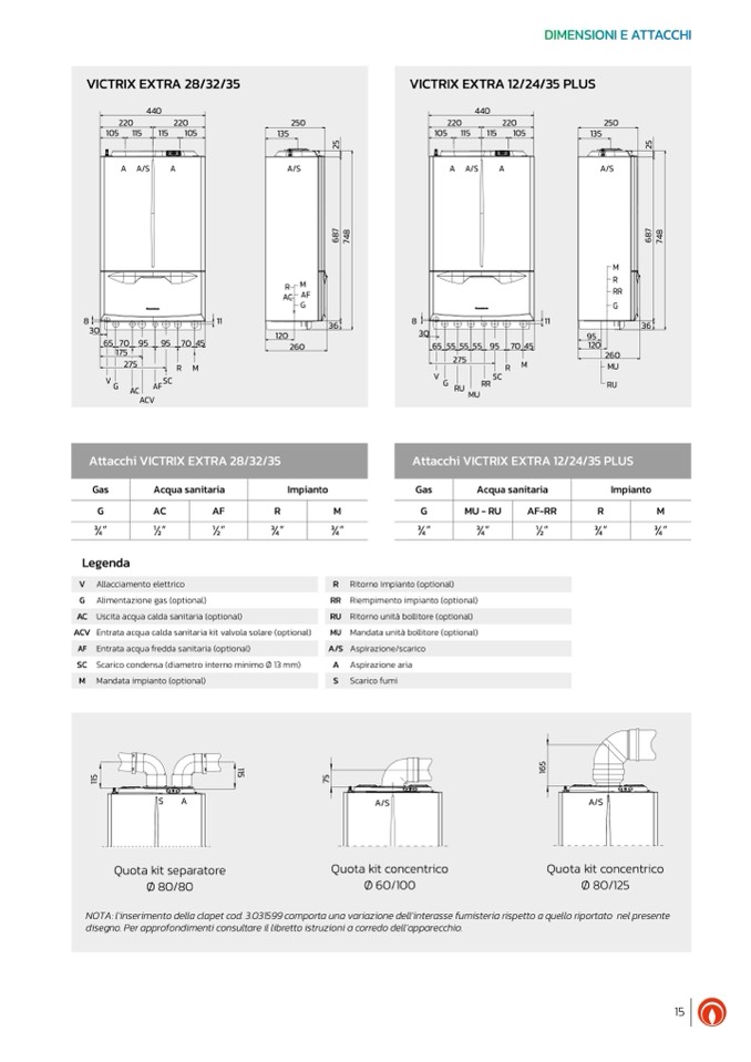 NOTA: l’inserimento della clapet cod. 3.031599 comporta una variazione dell’interasse fumisteria rispetto a quello riportato nel presente