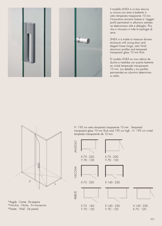 H. 195 cm vetro temperato trasparente 10 mm . Tempered