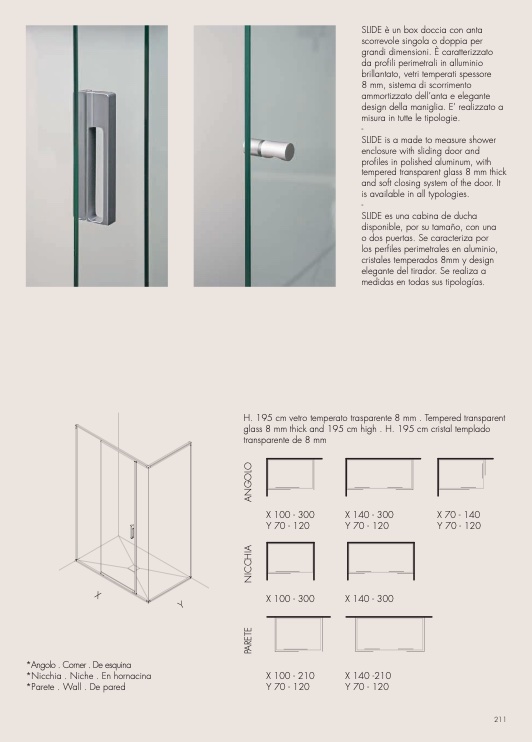 H. 195 cm vetro temperato trasparente 8 mm . Tempered transparent