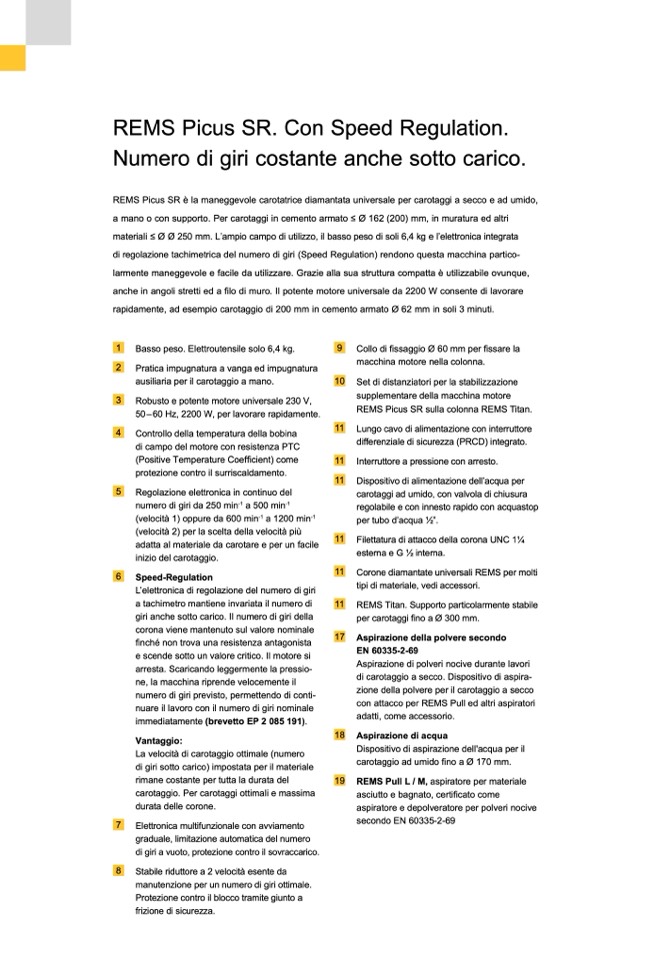 REMS Picus SR è la maneggevole carotatrice diamantata universale per carotaggi a secco e ad umido,