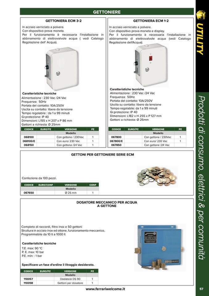 abbinamento di elettrovalvole acqua ( vedi Catalogo abbinamento di elettrovalvole acqua (vedi Catalogo
