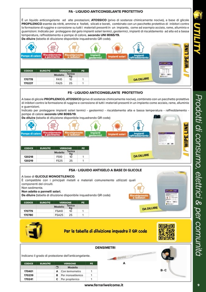 guarnizioni. Indicato per proteggere dal gelo impianti solari termici, geotermici, impianti di riscaldamento ad alta ed a bassa