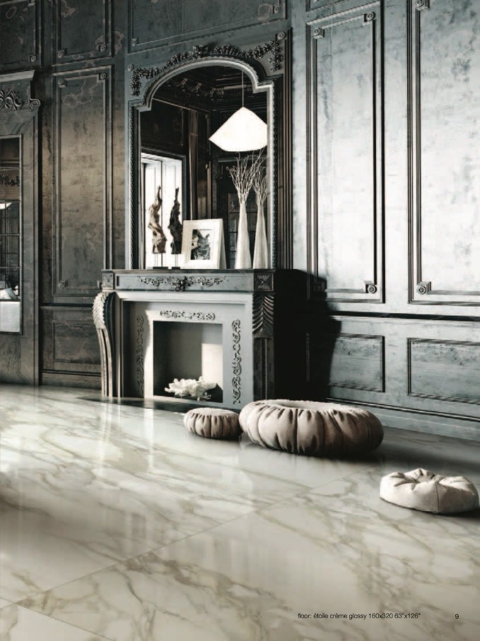 floor: étoile crème glossy 160x320 63”x126”
