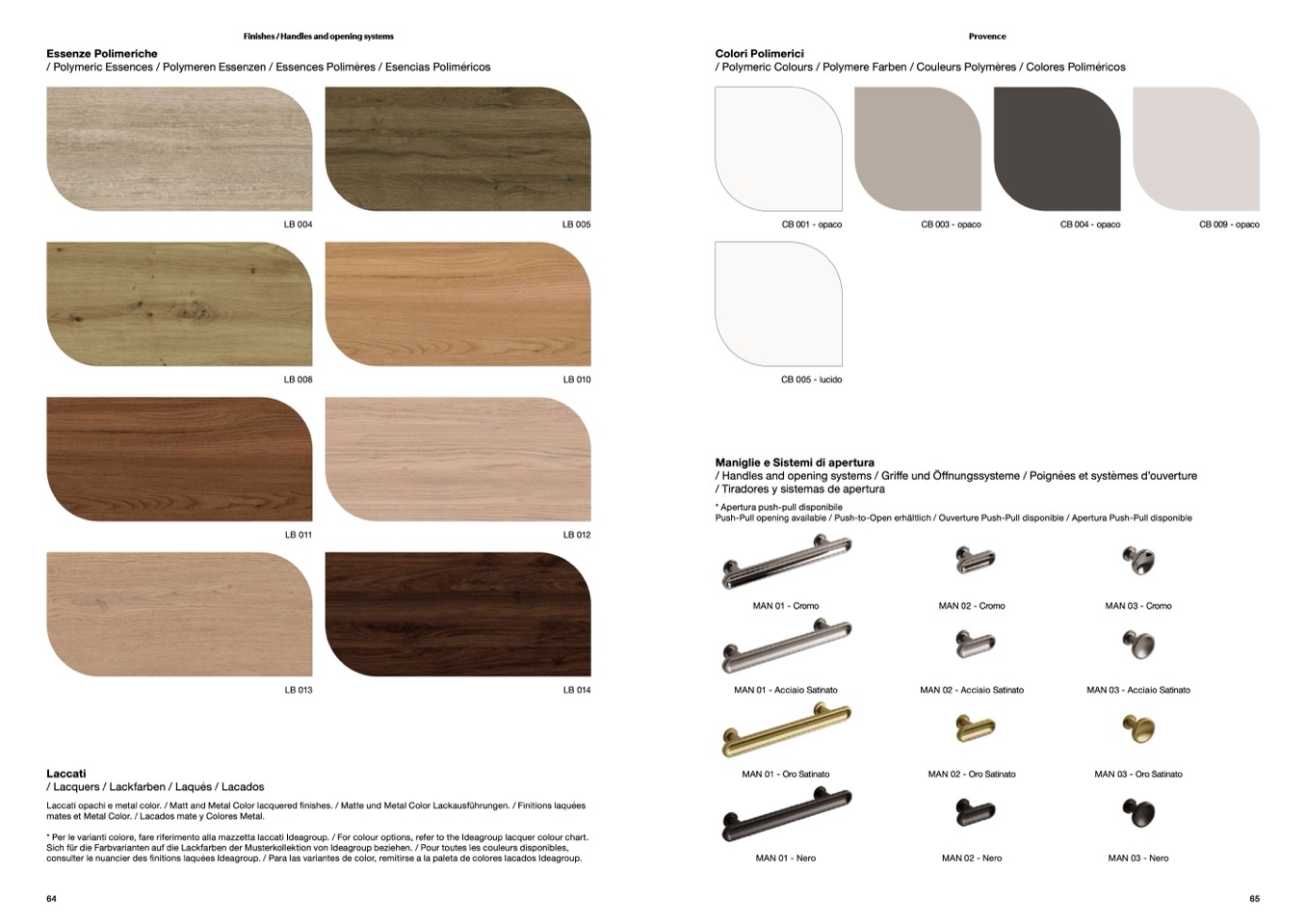 finitions laquées Ideagroup. / Para las variantes de color, remitirse a la paleta de colores lacados Ideagroup