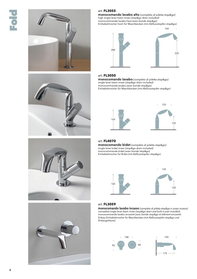 high single lever basin mixer (stop&go drain included)