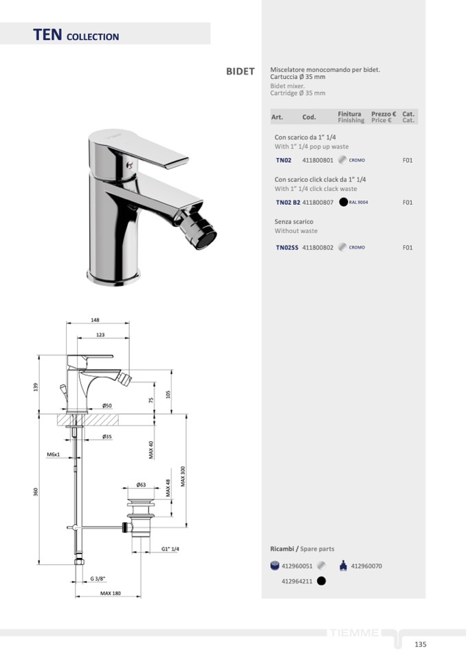 Miscelatore monocomando per bidet.