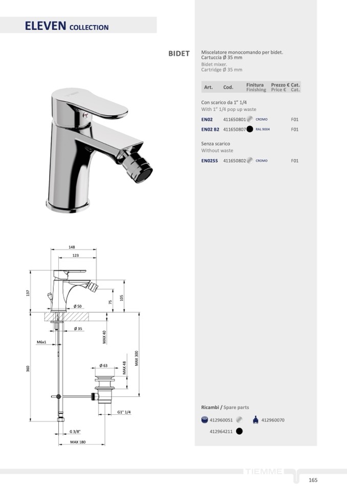 Miscelatore monocomando per bidet.