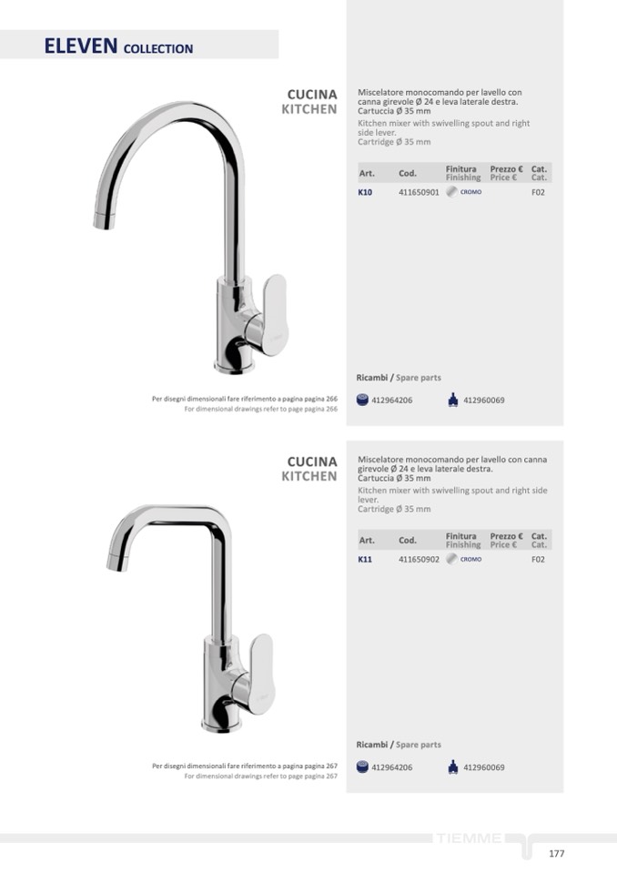 canna girevole Ø 24 e leva laterale destra.