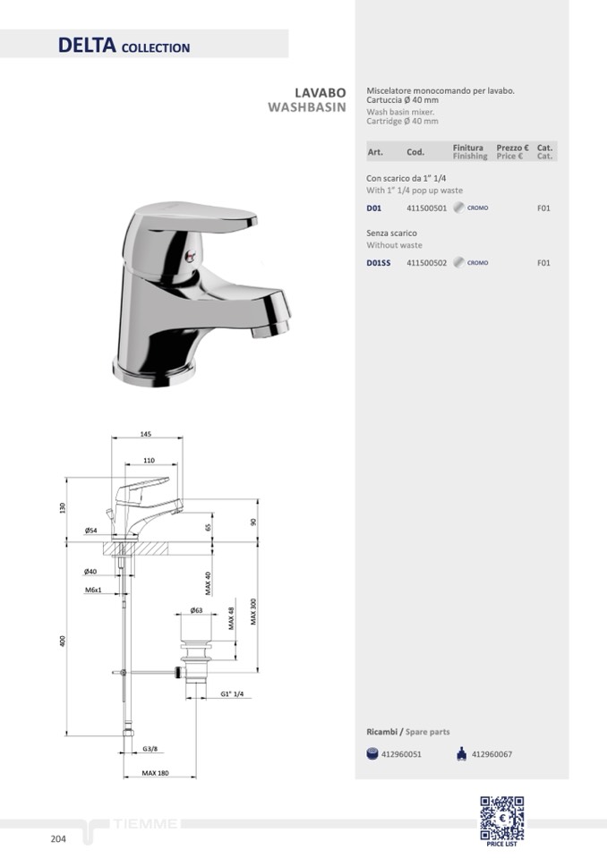 Miscelatore monocomando per lavabo.