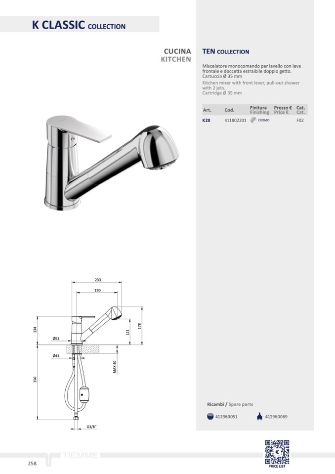 frontale e doccetta estraibile doppio getto.