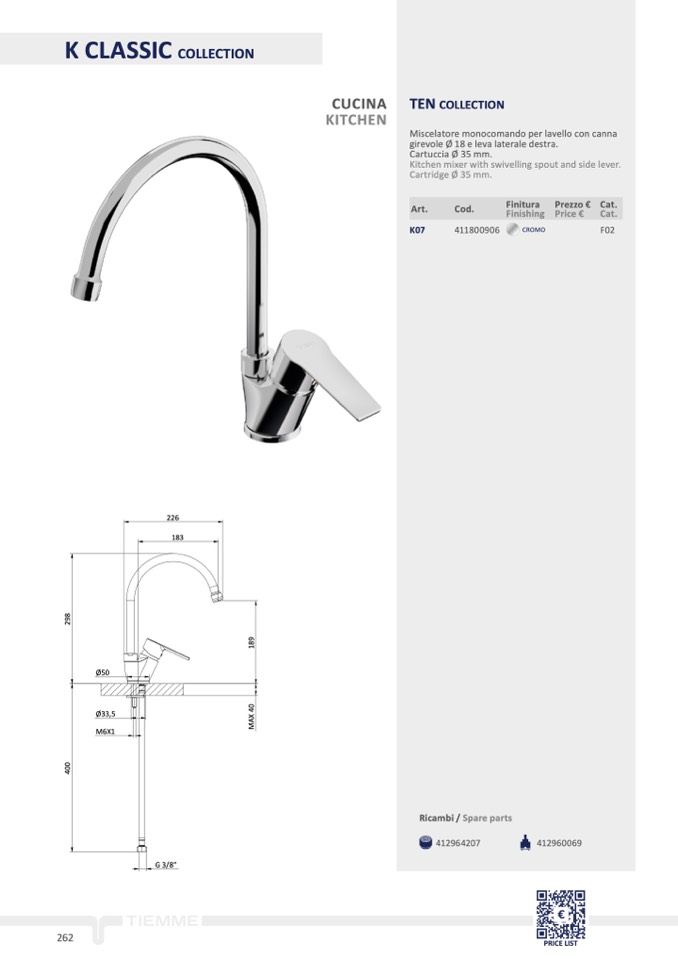 girevole Ø 18 e leva laterale destra.