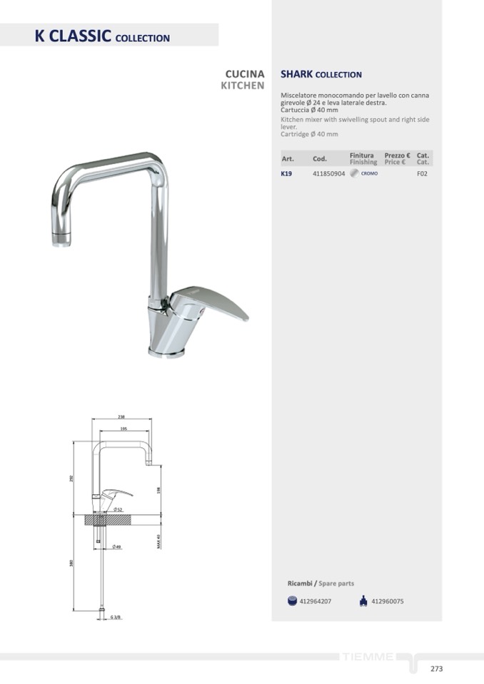 girevole Ø 24 e leva laterale destra.