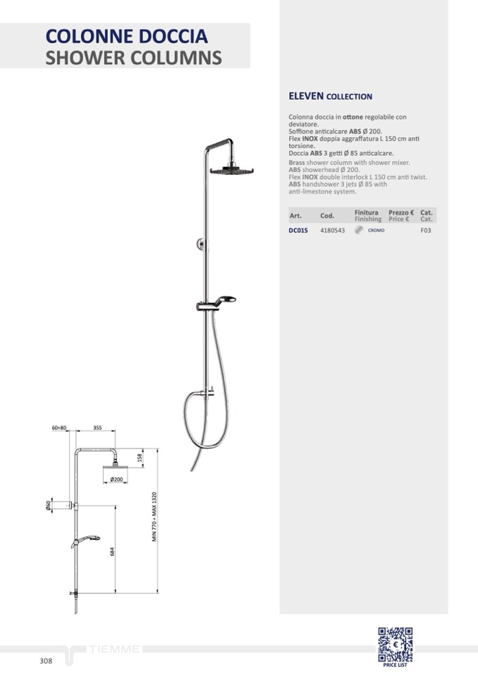 Doccia ABS 3 getti Ø 85 anticalcare.
